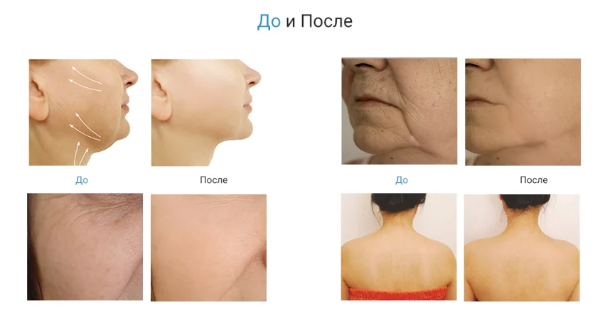 Результат: уменьшение морщин, улучшение контура лица, сужение пор.