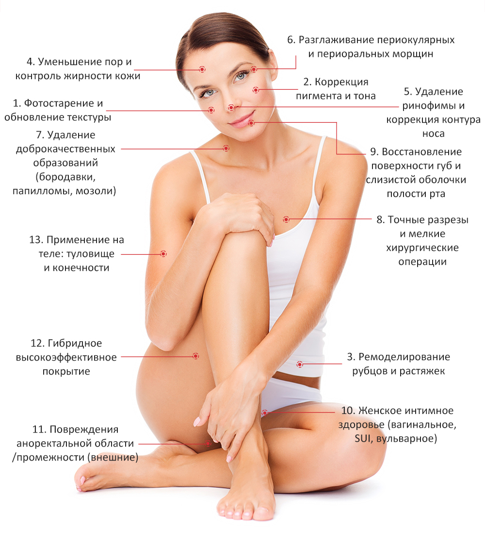 | Рабочий режим | Фракционный Полностью абляционный Гибридный |