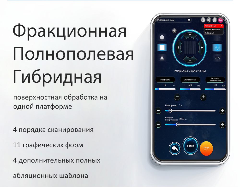 Working Mode: Фракционный/Полностью абляционный/Гибридный